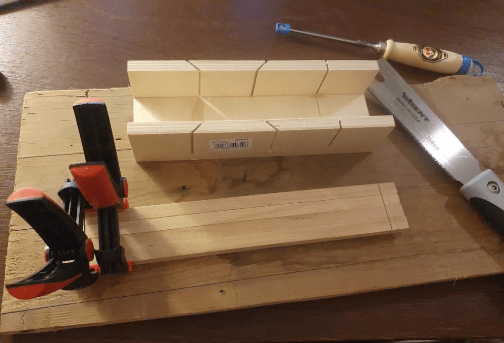 I had a plan, but I needed some more tools and material, so I went shopping. I got myself a mini ryoba, a real japanese saw, one high quality chisel, a sawing block/guide, and some clips. I wanted to accomplish two things with these tools: make more precise cuts and do them in batches.