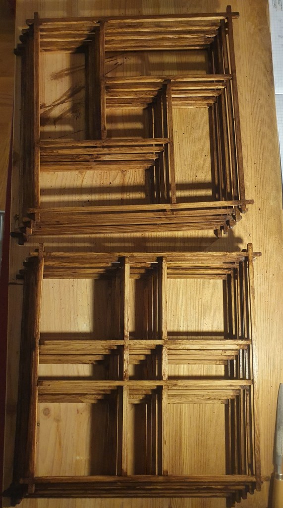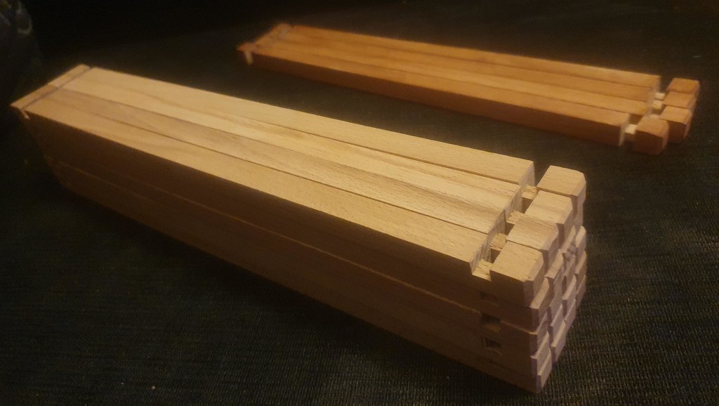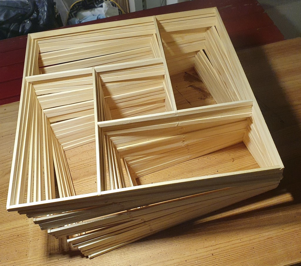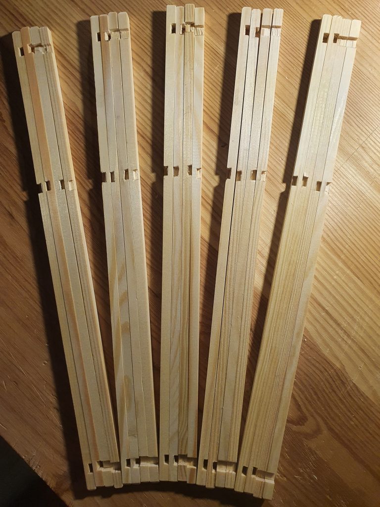 After coming back to Zagreb from the Christmas and New Year holidays, I bought some more tools and material needed for five more lamps. Five seemed to me like a reasonable number, not too much as to be unmanageable but still substantial. I didn’t glue up the prototype of the version 3 so I could use its parts as templates and to check what I was doing with this 1st series.