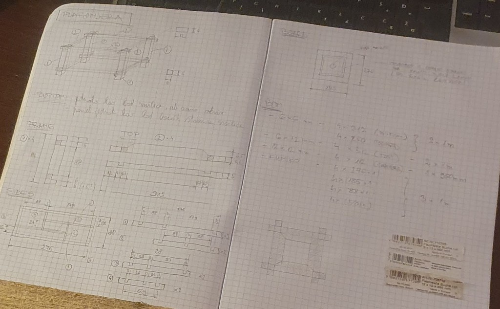 The process, as usual, started with a sketch which I made quite a long time ago, even before the cardboard boxes adventure.