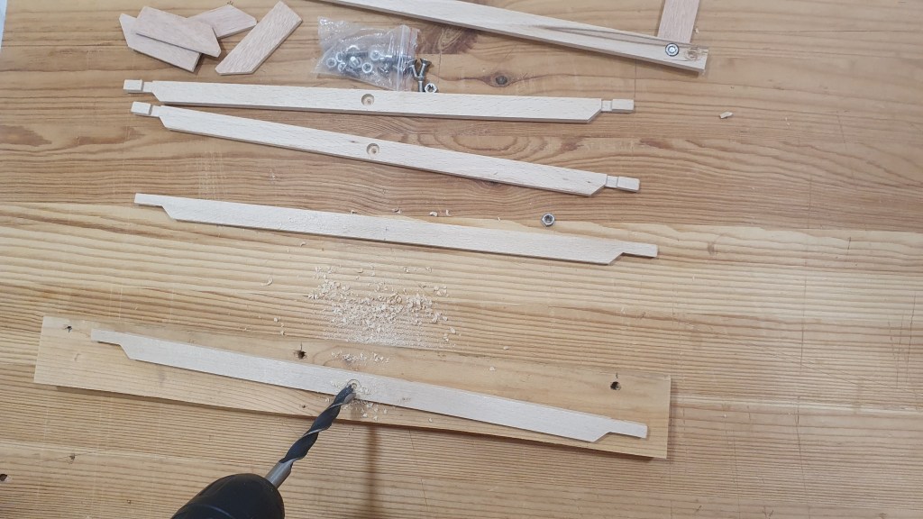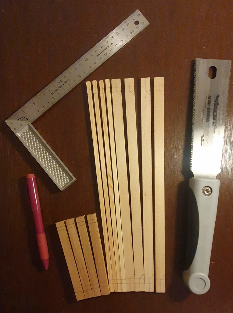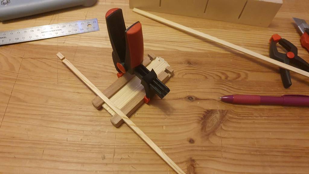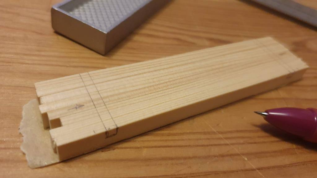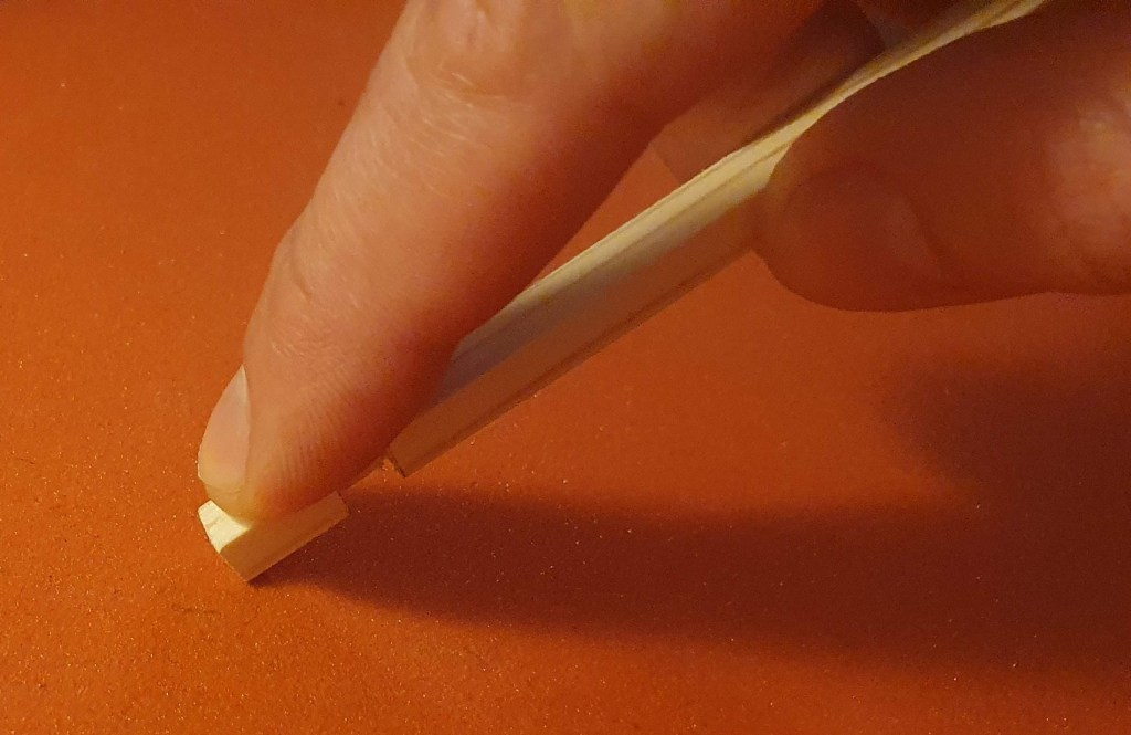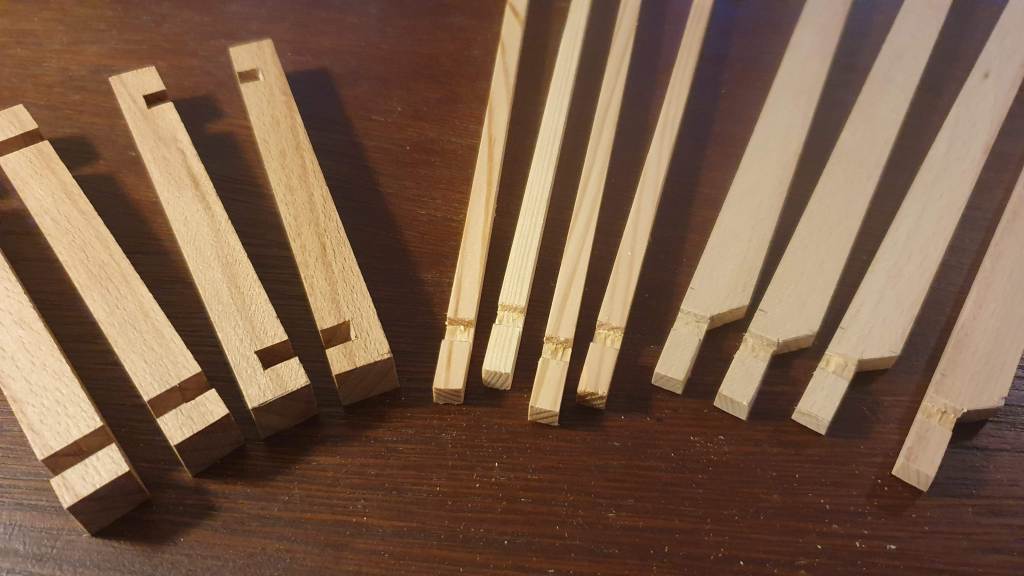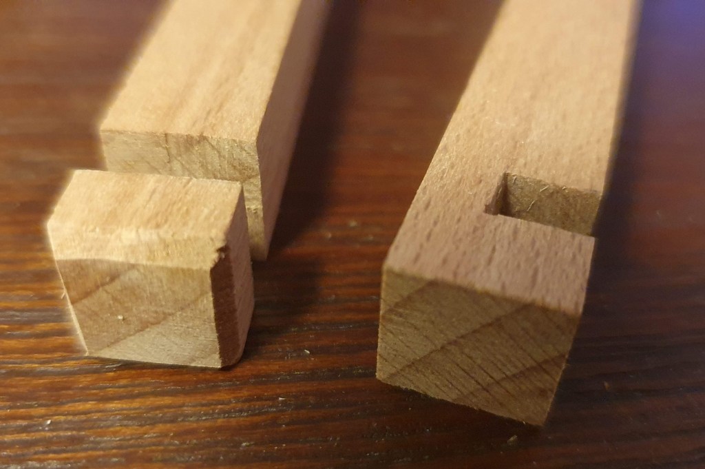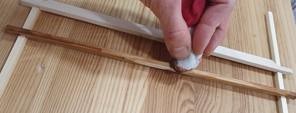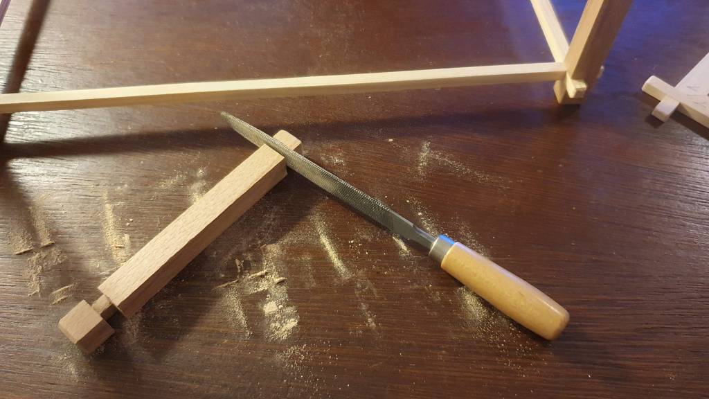 Next it was time to do the chamfers. On the elements of the top and bottom frame I did this using sandpaper.
