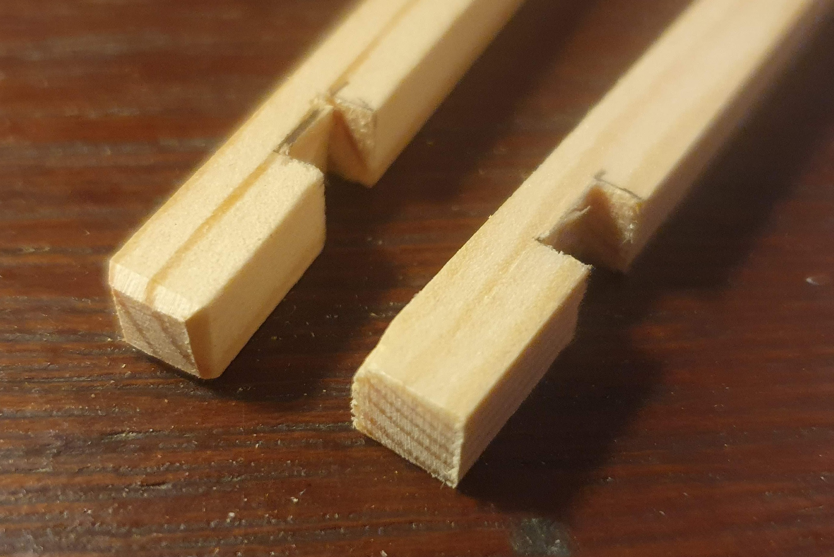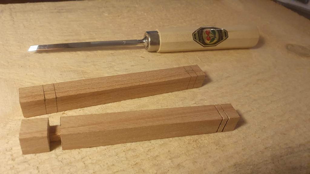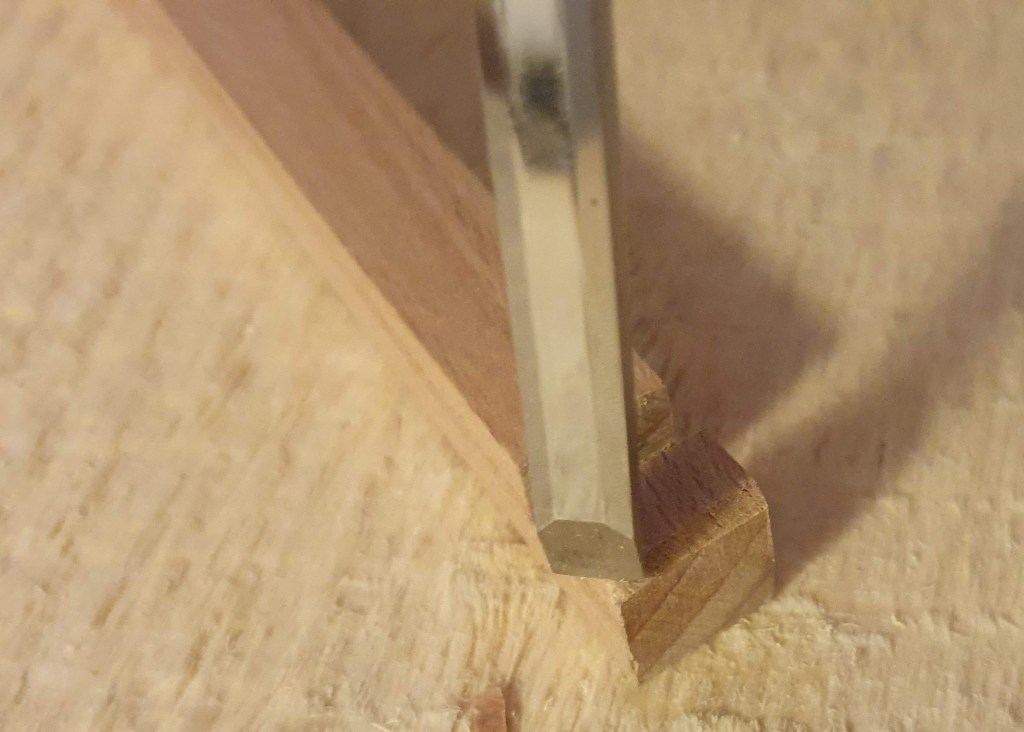 I made slots in stiles (the corner pieces) by first making cuts with the saw and then removing the excess material using the chisel.