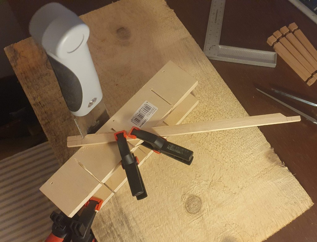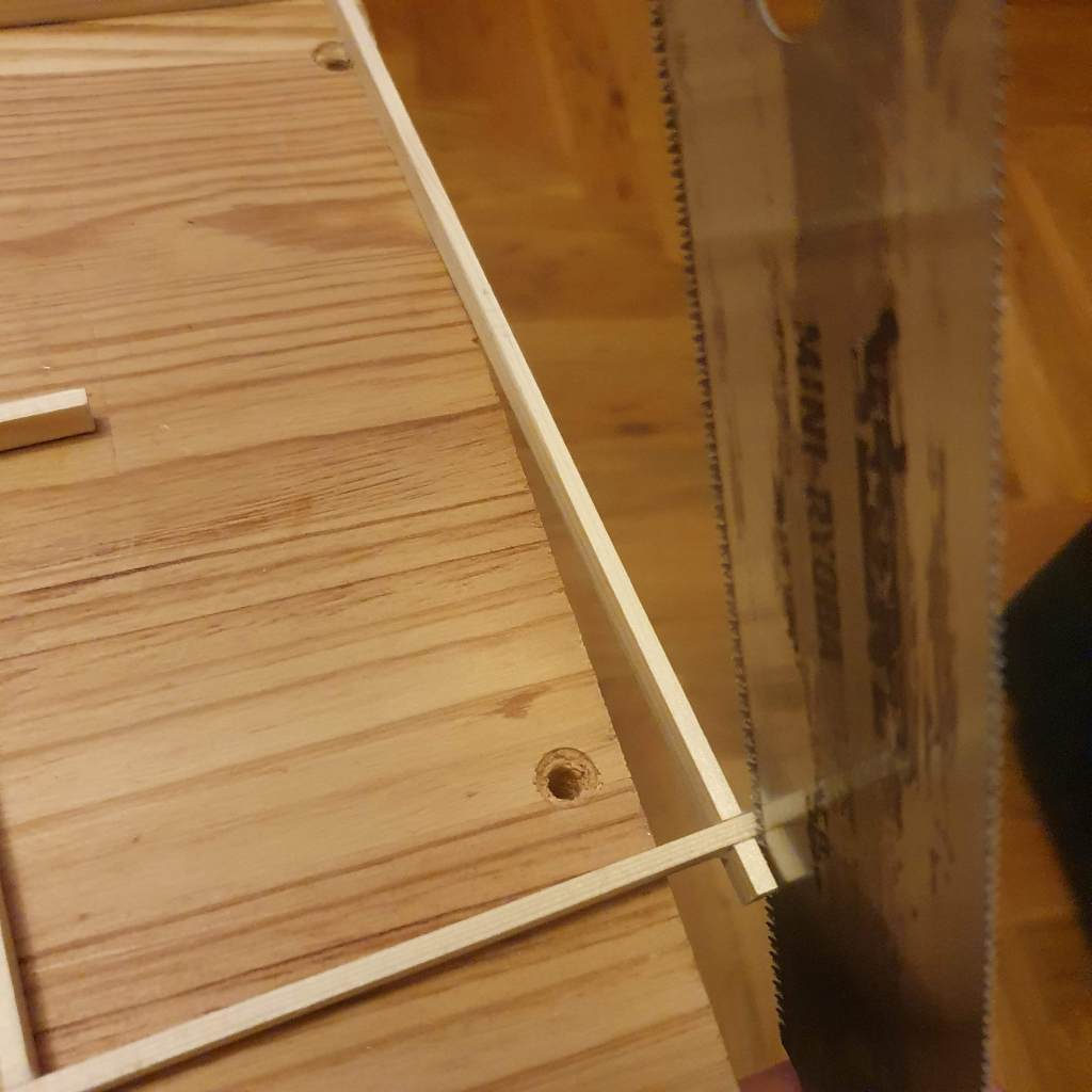 Next part to be made was the bottom kumiko. However, unlike last year, this time I didn’t manage to finish the lamp before my holiday vacation ended. So the whole operation moved back to Zagreb where I could take advantage of my newly upgraded workshop. That is, if someone wasn’t sleeping on the lift bed in which cases I had to work elsewhere in the apartment. For example, these shots of fitting and trimming the bottom kumiko were taken in the living room.