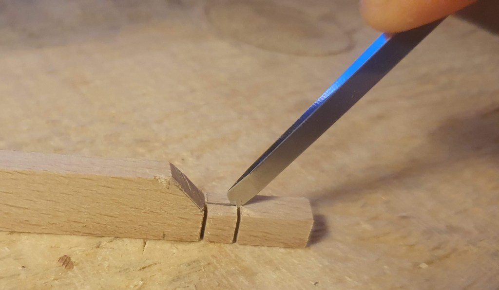 Cutting the shape on the elements of the top frame proved not to be straight forward.