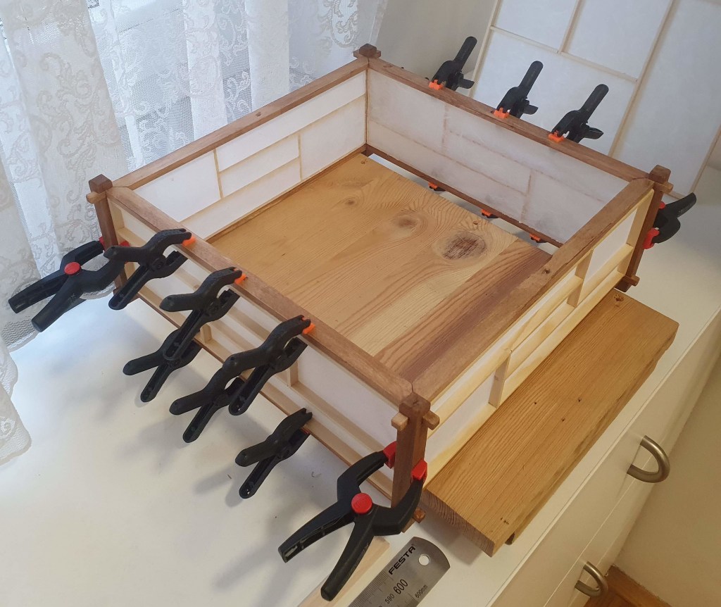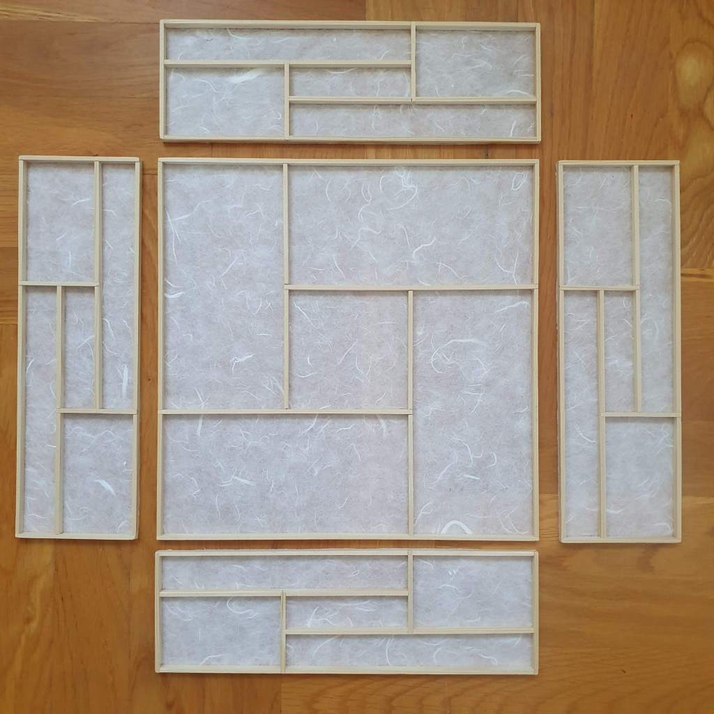 … and means it’s time to finish kumiko panels by gluing the paper on the frames.